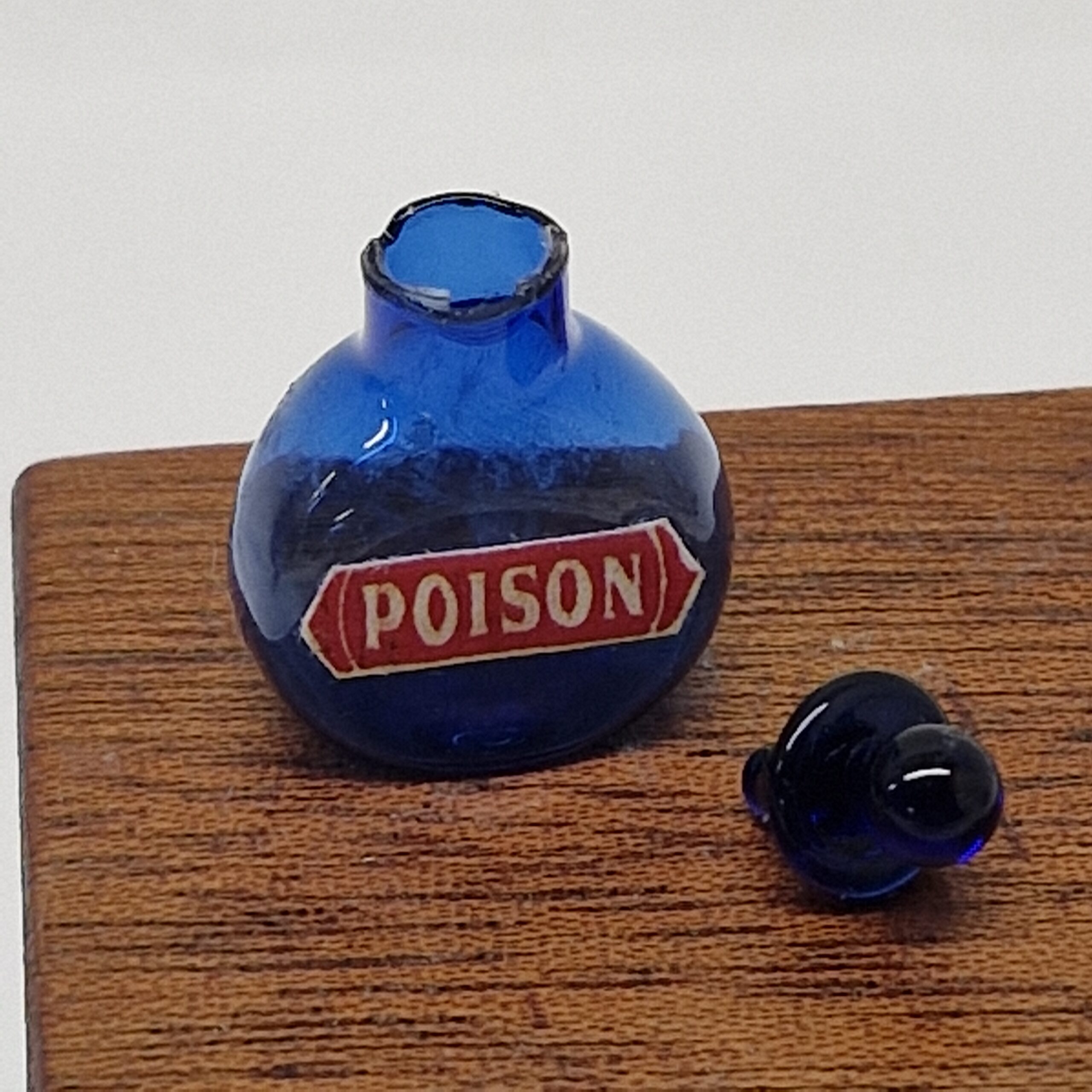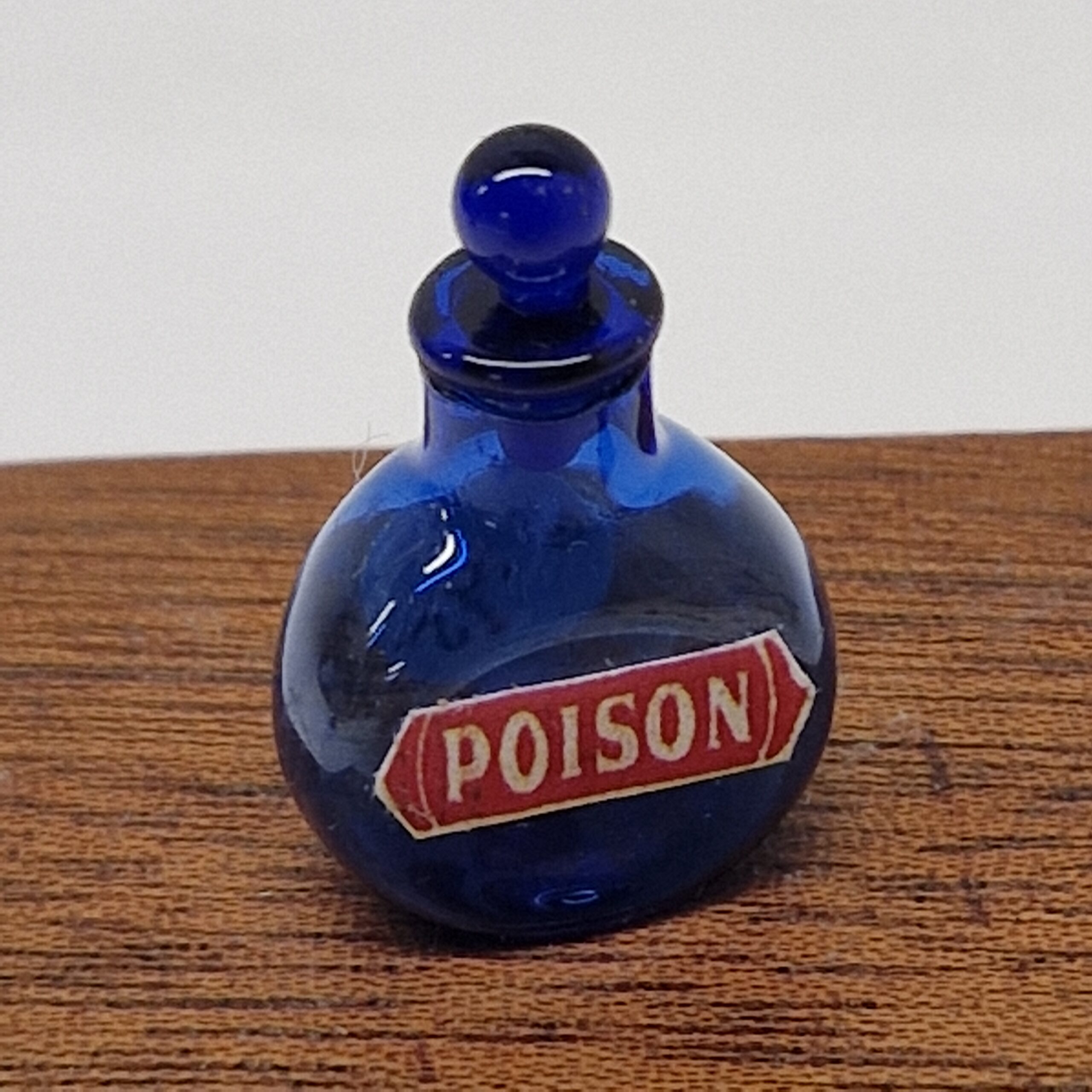 Blue Bristol Glass Bottle POISON Label